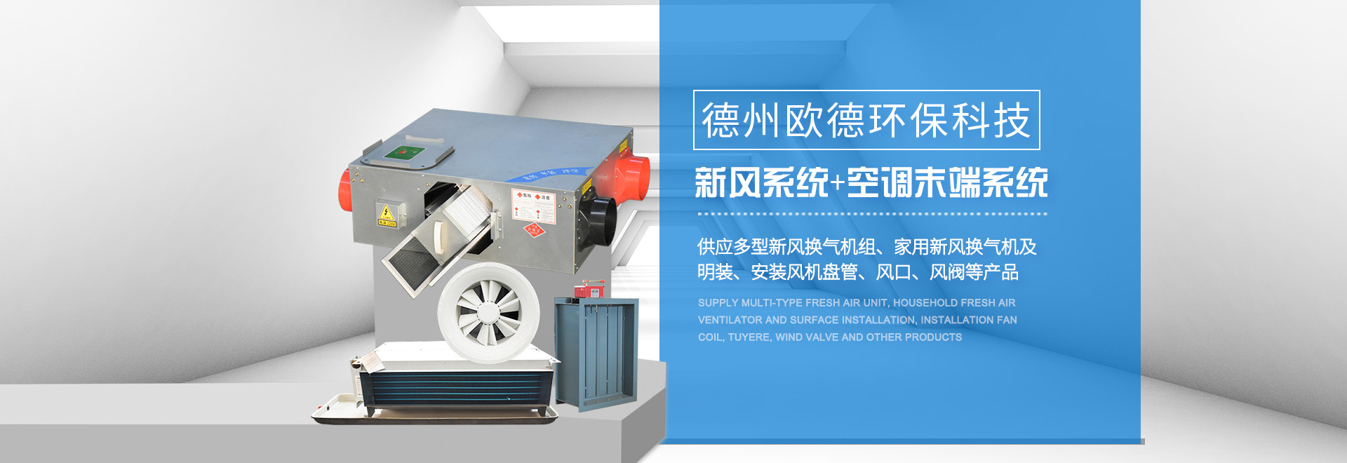 德州歐德環(huán)保科技有限公司位于山東省德州市武城經(jīng)濟開發(fā)區(qū),是一家集空調(diào)設(shè)備產(chǎn)、研、銷相結(jié)合的現(xiàn)代化企業(yè)。歐德以技術(shù)水平、服務(wù)標(biāo)準(zhǔn),贏得客戶的信任。公司建有現(xiàn)代化水平的商用空調(diào)設(shè)備生產(chǎn)線與末端設(shè)備生產(chǎn)線,可定制生產(chǎn)多型空調(diào)設(shè)備?! 」局饕a(chǎn)品:風(fēng)機(排煙風(fēng)機、軸流風(fēng)機、邊墻風(fēng)機、斜流風(fēng)機(混流風(fēng)機)、屋頂風(fēng)機、離心風(fēng)機、誘導(dǎo)風(fēng)機)、新風(fēng)處理機組、吊頂式空調(diào)器、風(fēng)機盤管(臥式暗裝風(fēng)機盤管、臥式明裝風(fēng)機盤管、立式明裝風(fēng)機盤管、卡式風(fēng)機盤管等),各類通風(fēng)管道(共板法蘭風(fēng)管、酚醛風(fēng)···